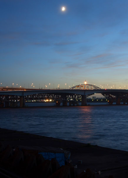 ふたたび通りにでて大島駅前を通過するとほどなく荒川に架かる船堀橋に到着。荒川下流に架かる橋は距離も長く越えるのが一苦労だ…。