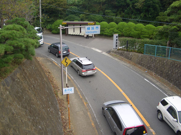 車の脇を抜けて坂道を下るとほどなく朝比奈の交差点に到着。右折してそのまま下り基調の道を六浦交差点まで一気に下降した。金沢側からの方がきつそうな感じであった。