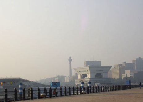 更に湾沿いに進むと赤レンガ倉庫が目に入ってくる。まだ早朝のためか人影もまばらだ。新港橋を渡ると開港の道という歩行者専用のプロムナードが山下公園まで続いていたので押して歩いてみる。山下公園に着くと人影が急に多く賑やかになった。体操をしてる人、掃除をする人、散策をする人、自転車に乗る人等様々な人々が行き交っていた。ここで少し休憩。