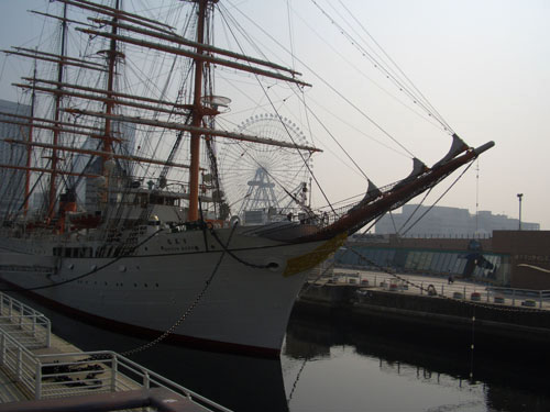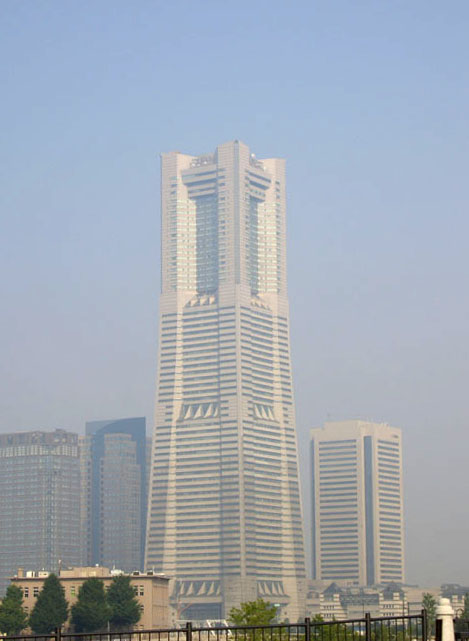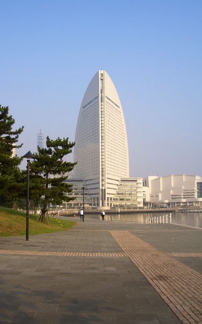しばらく休憩した後に国際橋を渡り新港パークに移動する。遠くにマリンタワーが見える。振り返るとグランドインターコンチネンタルホテルの特徴のある弓なりの建物が目に入る。横を見ればランドマークタワーが威容を誇っている。