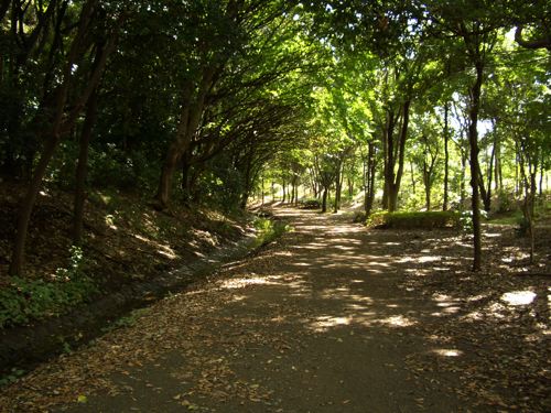 この先で少し迷った。侍橋を渡りすぐに右折し早渕川沿いに直進し橋を一本通過後に左折し直進、中原街道を横断後前方に緑道が現れる。山田富士公園、神無公園(ふじやとのみち)を通過し徳生公園、牛久保公園、西牛久保公園を過ぎたあたりでぱらぱらと雨が降りだしたので一時雨やどりする。先を急ぎながら再び走り出し、鳥山公園、山崎公園(ここで再度コースを見失いうろうろしてしまうさらに強い雨が突然降り出したので20分程雨宿りする)、中川八幡公園と“くさぶえのみち”をようやく通過することができた。