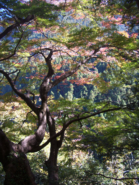 さらに少しすすむといろは楓という樹齢200年の楓の木があったがまだ紅葉しはじめといった感じであった。