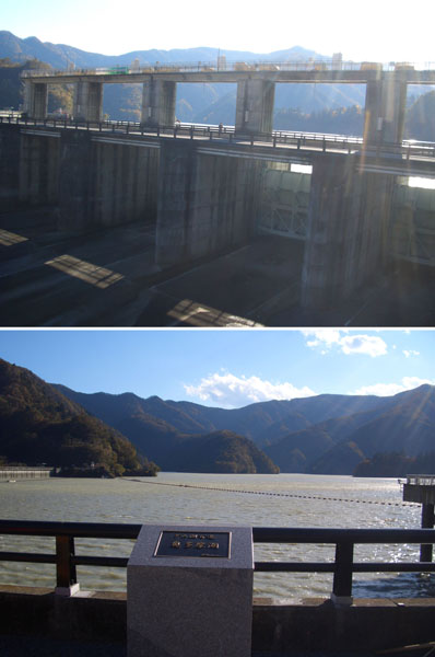 さらに進むと左手に空き地のような広場がありここでもハイカーが弁当を広げていた。さらにすすむと丁字路に突き当たった。奥多摩むかし道の案内板がありまだ先へ続いているようだったのだが今回はここまでとした。右に折れて青梅街道に向かう坂道をのぼっていくといままで通ってきた道が小さく見えていた。橋を渡りトンネルを抜けるとほどなく桃ヶ沢のトンネル前に出たので左折して中山トンネルを抜けると小河内ダムが聳えていた。