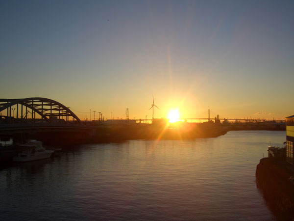 近辺をうろうろとしているとすでに日の出となってしまっていた。あわててカメラを取り出して何枚か撮影する。