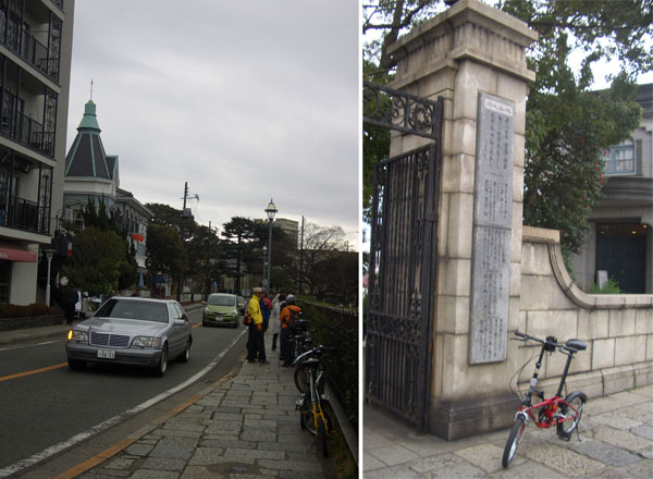 まずは自転車屋(GSC横浜前へ行くが営業前なので山下公園に向かう。風が強くじっとして話しているのも寒いということで幹事さんの忍太さんの先導で山手方面へと向かう。