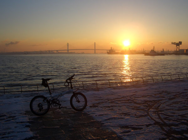 早起きして夜明け間近の寒い道をこぎだすと昨日の雪がところどころで凍結していて危ないので慎重にのろのろと(特にマンホールや路肩、横断歩道のペイント部分)走行していく。