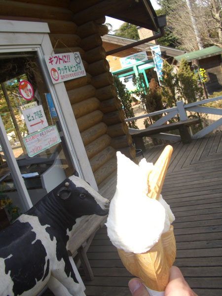 さらに西へと走行し相原十字路に到着。ここを右折し少し上って東京家政学院先のあいす工房ラッテというジェラート屋さんに寄ってみた。新袋橋から約1時間ほどかかったようだ。まだお昼前なのでお客さんは3名ほど。しぼりたてミルクのシングルを注文。
