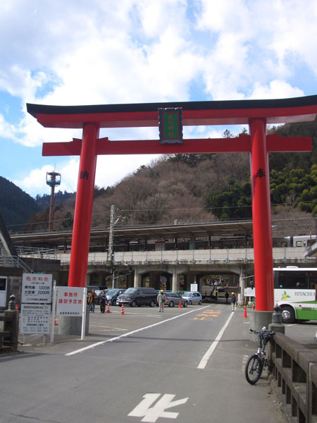 さらに進むと高尾山口駅前の大きな鳥居と左側にトリックアート美術館なるものがあった。アイス工房ラッテからここまで約40分ほど、ここでしばらく休憩。