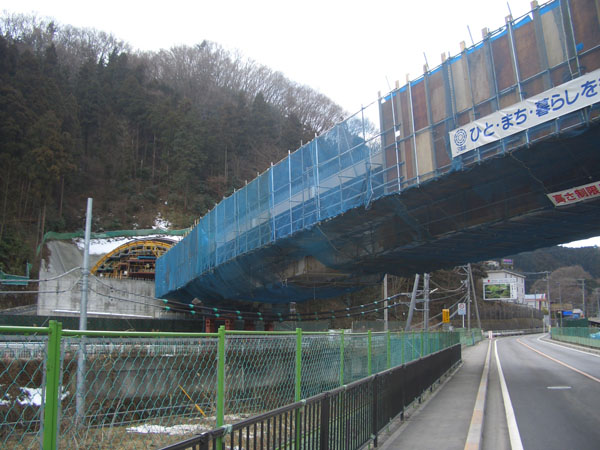 先へ行くと建設中の圏央道のトンネル工事現場があったのでしばらくとまって眺める。