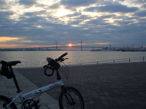 今月はベイブリッジの真ん中あたりから日が昇ってきました。雲が多くちょっと残念。