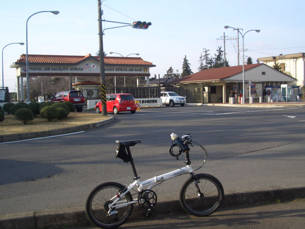 大和駅前を通過し以前きた厚木飛行場横を通過して裏道を迷走して厚木基地正門前へ到着。警備が厳重だ。ここで左足の指がつりそうになったので少し休憩。