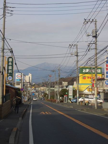 なんとかおさまったので出発。再び県道40号線に復帰。この辺りは厚木飛行場を迂回するためにえらくジグザグな道になってしまっているようだ。しばらく走行すると前方に大山が…。