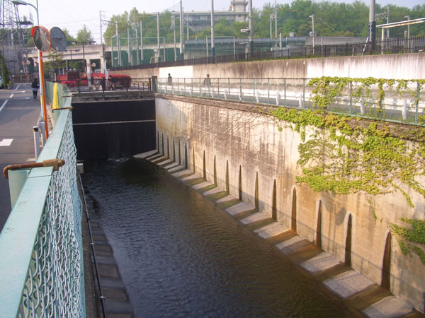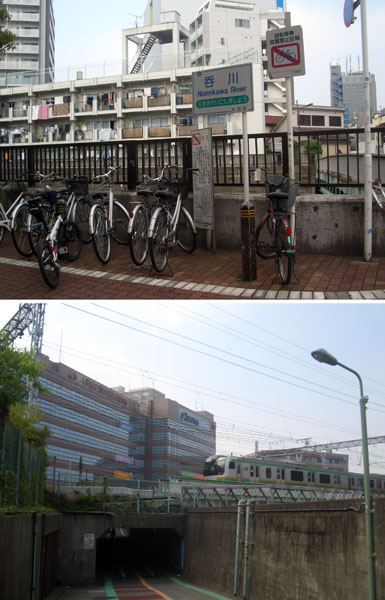ほどなく東急大井町、目黒線の高架前で川は地下に姿を消していた。