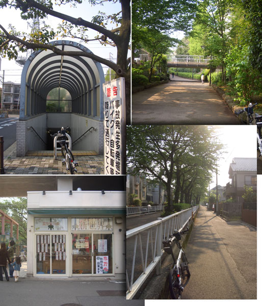 歩行者用トンネルをくぐりぬけると快適な呑川緑道が続いていたがしばらく走行すると道の中央の細い少し走りづらい舗装や車止めがわずらわしくなったので側道を走行していくことにした。