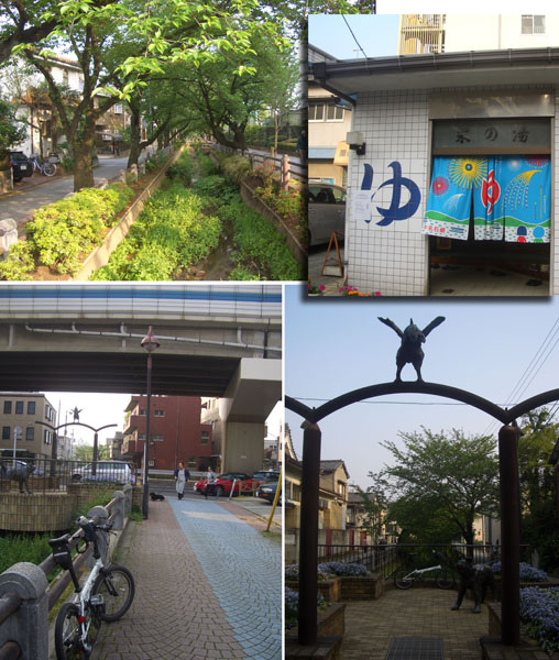 なにやら賑やかな街の中にでたとおもったら東急東横線の都立大学前だったらしい。目黒通りを横断してさらに走行していく。世田谷の住宅地(深沢)の中を抜けて駒沢通りを横断して日本体育大学前を通過するとほどなくR246号線につきあたった。右手になぜだが銭湯があるのが不思議な感じだった。