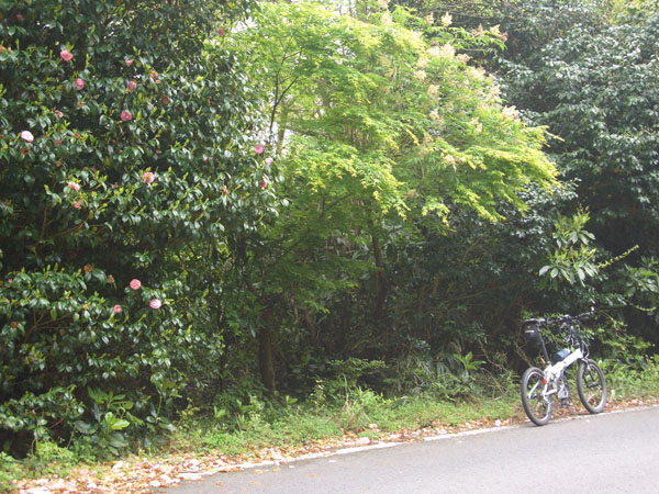 100mごとに距離表示があるようで目安になる。ところどころに椿ラインという名前の通り椿が咲いていて甘い匂いも漂ってきたが頻繁に通りすぎるオートバイの轟音や疲労もでてきたためあまり楽しむ余裕はない。