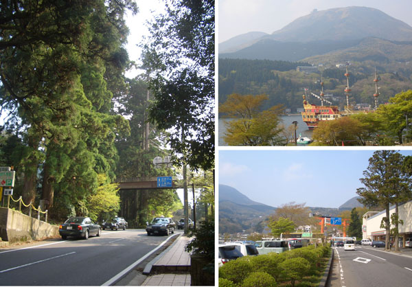 さらに先へと行くと鳥居が現れ遊覧船乗り場や土産物屋、茶店の前を通過しもうひとつ鳥居が現れさらにすすむと箱根神社前についた。