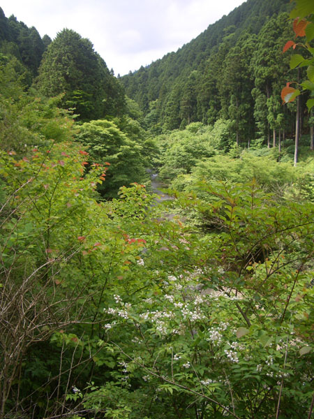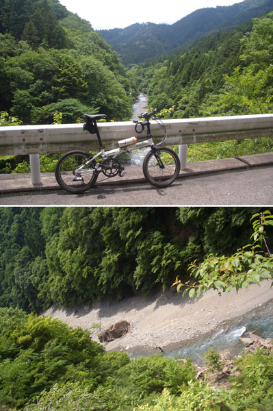 再び急な階段を上って県道70号線まで戻る。このあたりから先の道はさらに細くなり路面状態も悪くなってきたのでさらにのんびりと景色を見ながら下っていく。