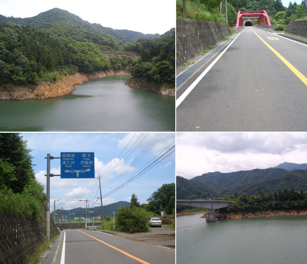 さらに下り赤いアーチの橋を渡りトンネルを抜けるとほどなく丁字路につきあたり今回は右折して宮ヶ瀬湖に向かうことにした。時刻は午前11時45分となっていた。