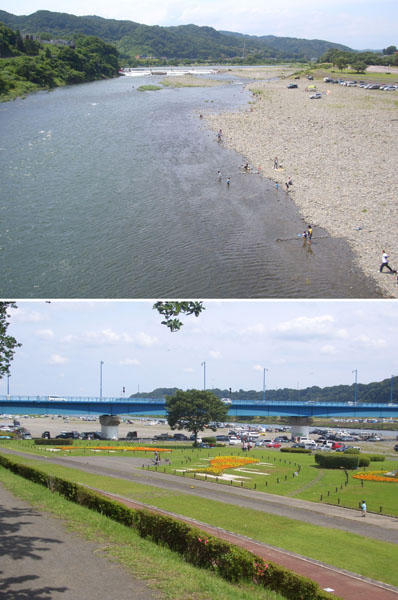札掛橋からさらに下り物見峠入口という標識がでていたのでまた寄り道ということで自転車を駐輪して階段を下って川原までくだると物見公園橋という橋が架かっていた。何やら涼しげで気持ち良さそうな川原だった。橋を渡ると神奈川の美林50選、丹沢札掛のモミ林という柱が建っていた。