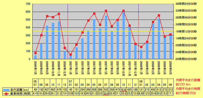 2008年01月〜06月 約1,882km 約110時間