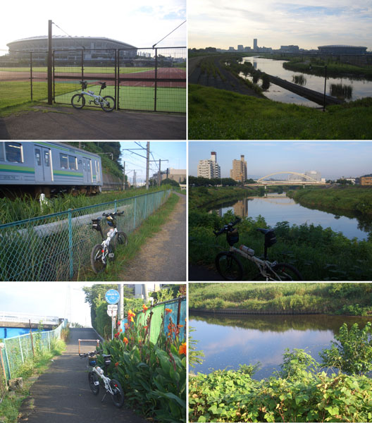 日産スタジアム下の新横浜公園に降りてサッカー練習場やら野球場やらテニスコートの回りを走行して小机大橋付近にでる。