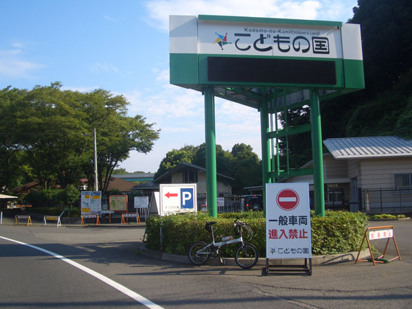鴨志田東を右折して坂道をのぼって豪快に下る。小学生の時にきたサイクリングで坂道の記憶があるがこの坂だったかな。広い通りを抜けて日体大前を通過しアップダウンをこなして住吉神社前を右折しほどなくこどもの国前に到着した。まだ開園時間前で門が閉ざされていた。