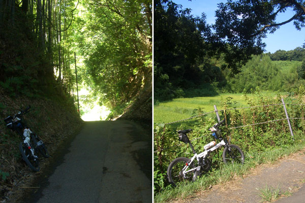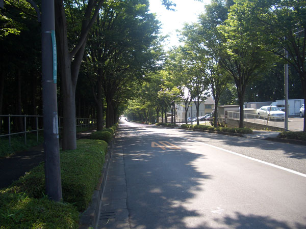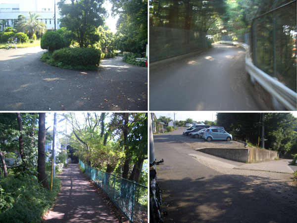 奈良北団地入口を左折してちょっときつめのアップダウンをこなし玉川学園のキャンバスに進入。自動販売機前の休憩所でちょっと休憩後に農学部?前の丸舗装の急な坂道を下ると次第に道が細くなってくる。