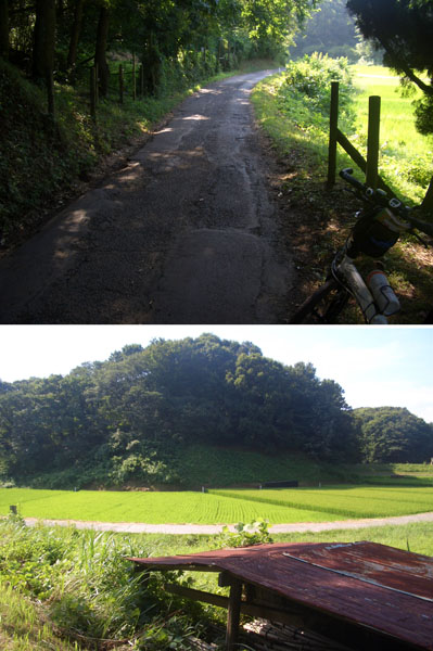 妙福寺前の丁字路を右折し先の三叉路の中央をいくと山里っぽくなり少しひんやりとした風が吹いてきて気持ちよかった。切り通しを抜けると田んぼが広がっていて寺家ふるさと村に到着したようだ。時刻は8時ちょっとすぎだけどかなり暑くなってきた。