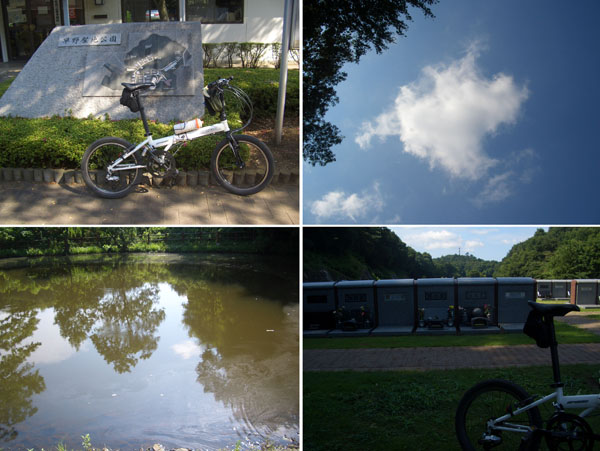 鶴見川沿いをのんびりペースで走行して小机大橋を渡り右岸へ渡ろうとしてくねくねと路地を走行して新横浜公園に到着。炎天下の中テニスやら野球、サッカーをしている人たちがいた(人のこといえませんが…)。