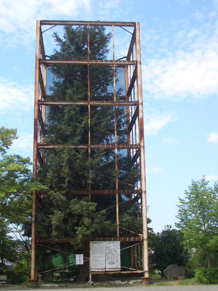 すすき野小前信号で左折しみちなりにいき遊水池前で右折かやのき公園が隣りにあったので寄ってみる。樹齢600年という大きなかやの木が鉄枠に囲まれて立っていたのが印象的だった。