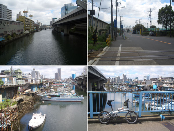 米軍施設手前の瑞穂橋でUターンして村雨橋を渡り右折して運河沿いに子安方面にのんびりと向かう。橋を渡って出田町埠頭を走行してみることにする。郵便局前を通過し貨物線の踏切前で左折、テクノウェイブ(オフィスビル)前ではテレビドラマか何かの撮影が行われていた。