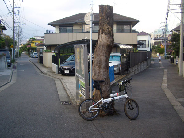 見晴らしの良い高台を走行し仲手原アパートバス停先の信号先を右折して細い道を下ると東急東横線沿いにでた。踏切を渡って旧綱島街道を横断して路地をぬけると白幡池に到着。ここで時計をみるとすでに昼過ぎとなっていたのでいったんやめて家に帰ることにした。