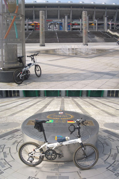 外は少し蒸していて暑いが天気は良さそう。新横浜から日産スタジアムに向かう。スロープがあったのでのぼろうとすると自転車乗り入れ禁止とあったので押していくことにする。