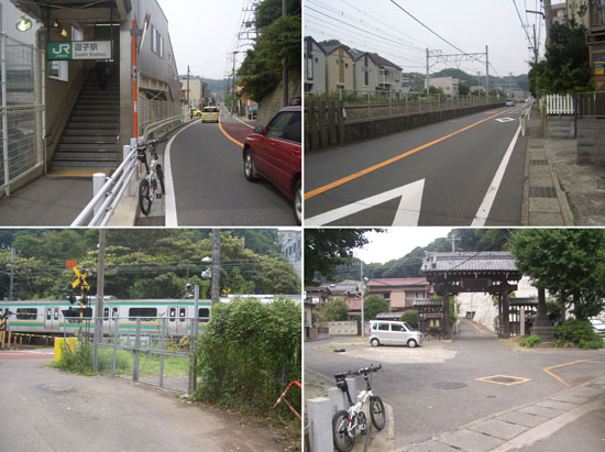 逗子駅裏を通過し線路沿いを進んでいく。道は突き当たりとなり踏切を渡らないといけないためかかなり渋滞している。線路の反対側の道を走ったほうがよかったかも)踏切脇にお寺があったのでちょっと休憩。
