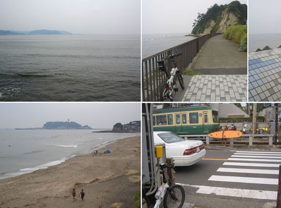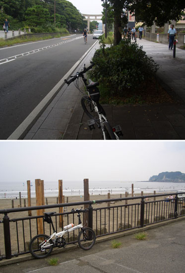 いくつかのお寺の脇や商店街を通りぬけると若宮大路の下馬交差点にでた。左折して由比ヶ浜にでる。しばらく海を眺めて休憩。ここからはのんびりと歩道を走行していくことにした。