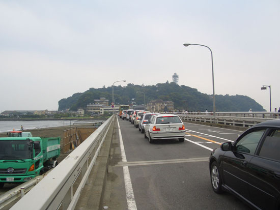 ヤビツ峠にでもと思ったけど天気もはっきりしないしちょっと寝坊してしまいあまり考えないで走れるところということで江の島に向けて午前10時頃に出発。
