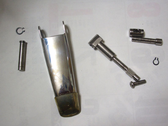 まず金具の軸を固定している薄いリングを外す。折ってしまうのではないかと冷や冷やしながらなんとか無事に外しバラバラと分解してパーツクリーナーで汚れをおとしてグリスを塗ってまた組み付け直しておいた。(リングを折っちゃうと困るのであんまり分解しない方がよいかな)