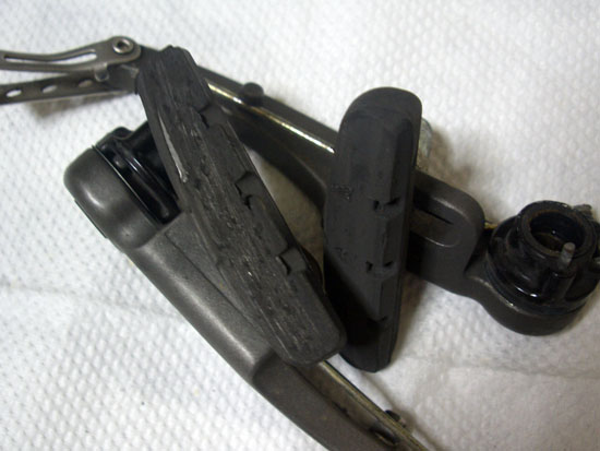外したブレーキシューはかなり偏摩耗していた。ということで8,788km走行して交換ということになった。偏摩耗していなければ10,000kmぐらいもったのではなかろうか。(リアブレーキはそれぐらいいきそうだが…)