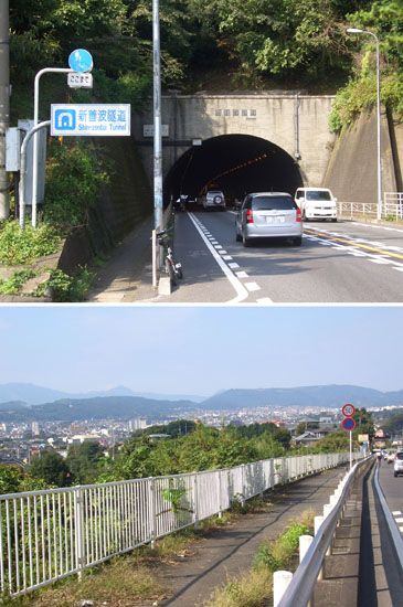えっちらおっちらとだらだらとした坂道を上っ途中一度信号で停止し無事に新善波トンネルに到着した。トンネルの向こうは晴れているのだけれどちょっと霞っているため富士山は望めなかった。