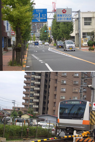 10分ほど休憩後奥多摩街道にでて東青梅駅前を通過し右折し踏切を渡ると成木街道の入口に着いた。