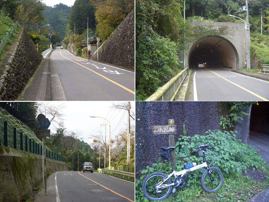 滝成トンネル抜けさらにゆるやかにのぼってカーブを曲がると直線の急坂が目の前に現れた。先のほうに小沢トンネルが見えていた。えっちらおっちらと急坂を上りほどなくトンネル前に到着した。時刻は1時半すぎでまだ引き返すには少々余裕がある。せっかくここまできたのだから引き返すの惜しい…。ということで5分ほど休憩後にトンネルを抜けて下っていくことにする。