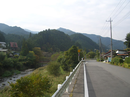ここからは埼玉県飯能市でこちら側はくねくねとつづら折りの道で10%という標識が出ていた。豪快に下って(下りながらまたこの急坂を帰りにのぼらなければならないということで少々憂鬱になった)ほどなく道が二叉に分かれていたので直進して(どちらへすすんでも名栗湖方面にいけるようだ)橋を渡る。入間川という表示があった。
