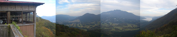 直進すると芦ノ湖スカイライン(自動車専用道)となるので左折して古びたトンネル(長尾隧道)を抜けると峠の茶屋があったのでその横でちょっと休憩。甘酒でも飲んでいこうかなと思ったけどまだ仙石原にも寄らないといけないしということで芦ノ湖やこれからいく仙石原方面を眺めて早々に出発。