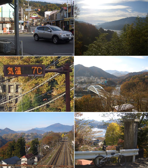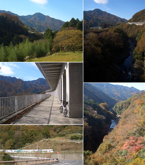 四方津、梁川、鳥沢と走行してほどなく猿橋に到着。観光地らしく結構賑わっていた。紅葉のほうはそろそろ終わりといった感じだったがなかなか綺麗だった。(10:30頃)