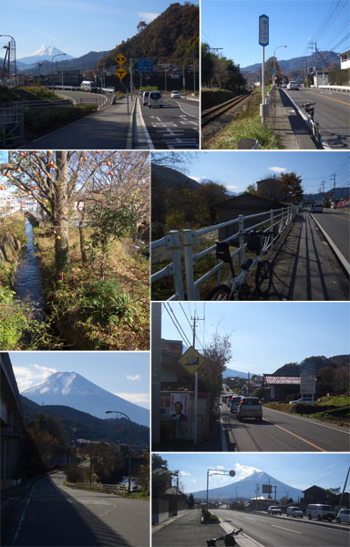 左折して緩やかな坂道をのぼっていく。田之倉、禾生(このあたりにリニアモーターカーの実験施設があるらしい)、赤坂、都留分科大学前を通過して十日市場駅前あたりにくると7%勾配の標識がたっていた。前方に時折見える富士山や脇を流れる用水路の水音を聞きながら(車通りは多いけど…)よろよろと走行していく。今までだらだらのぼってきた疲れもありちょこっとコンビニ前で補給休憩…。