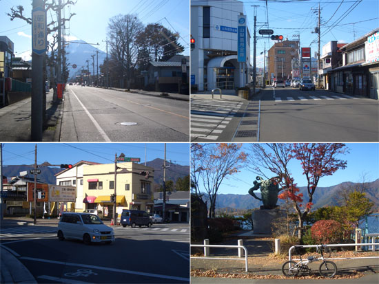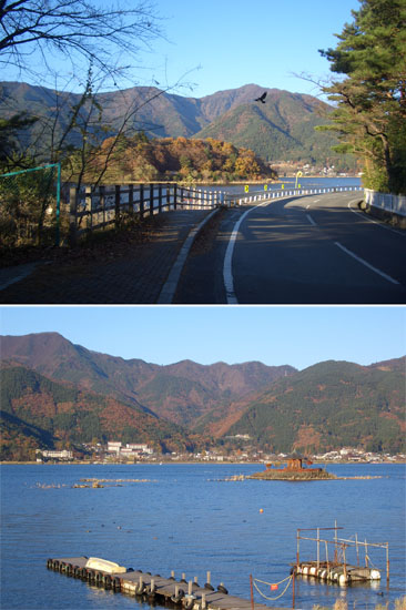河口湖はなかなか広い湖だったようで一周すると約18kmほどあるようだ。(山中湖は14kmほど)北岸から南岸に回り込んで走行していると少し冷えてきたのか鼻水が…。