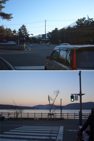ようやく東岸の交番前に到着。方向感覚がおかしくなってしまったので船津三差路までの道を尋ねてみると丁寧に河口湖駅までの名刺サイズの地図をくれた。(尋ねる人が多いのだろう)