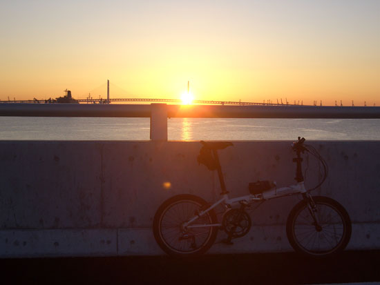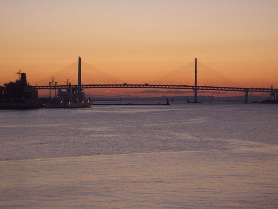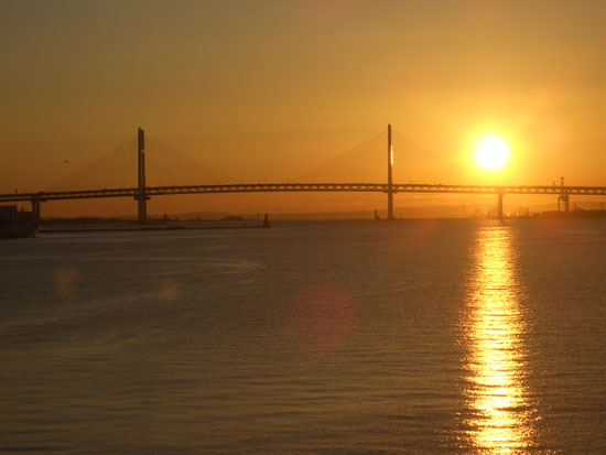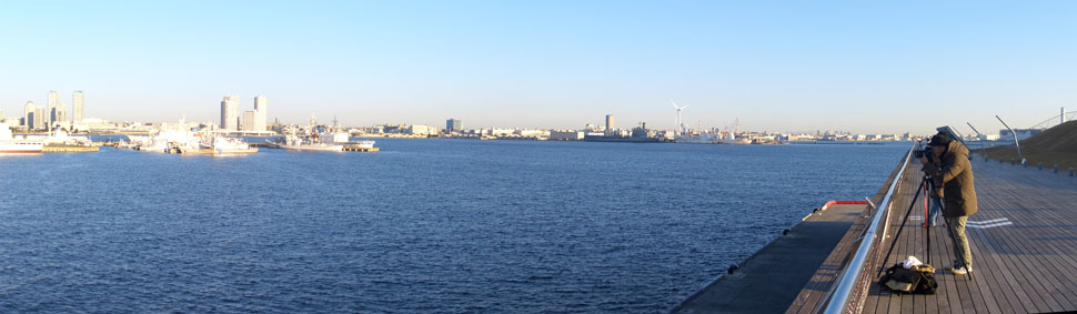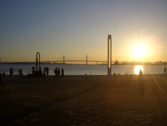 やはりここからはなかなか眺めが良かった。日の出まで数十分写真撮影しているとパトカーが巡回してきて通行禁止と注意されている人がいたようなのでみなとみらい方面に向かうことにした。