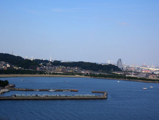 公園を出て道なりに進んで野島橋を渡り野島に上陸し野島公園の展望台を目指すことにした。公園につくと急な上り坂だったので押していくことにした。息をきらしながら上りきると白い展望台らしき物と回りに木製のベンチが設置してあった。展望台に上ると心地良く吹く風と開けた眺望が望めた。八景島や海の公園、平潟湾、東京湾や富士山もぼんやりとシルエットが浮かんでいた。海の公園の後方の丘の端からみなとみらいのランドマークタワーの頭が除いていた。少し離れてベイブリッジや鶴見つばさ橋、巨大な風車なども見晴らせた。もっと空気が澄んでいる時期なら素晴らしい眺望が望めるのだろう。(寒そうだが…)